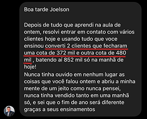 É importante lembrar que mesmo fazendo tudo isso, ainda vende mais de 1 milhão em consórcios todos os meses, usando as técnicas que serão ensinadas nesse workshop.