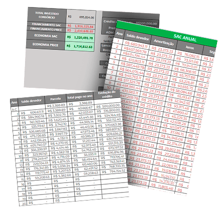 Essa planilha será sua aliada em reuniões com clientes de alto padrão, ajudando a destacar de forma clara e convincente as vantagens do consórcio em comparação com o financiamento.