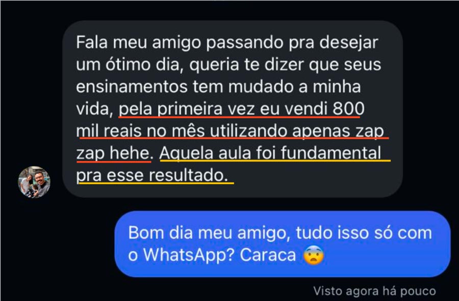 Essas são as mesmas estratégias que o Geraldo utilizou para vender 750 mil reais pelo WhatsApp em um único dia: